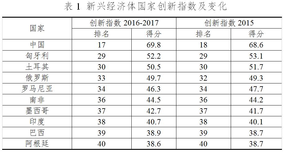 三、新興經(jīng)濟(jì)體創(chuàng)新排名整體靠后,金磚國(guó)家排名穩(wěn)定