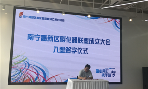 導語:9月20日,南寧高新區(qū)孵化器聯(lián)盟在南寧創(chuàng)客城舉行成立大會。來自南寧高新區(qū)轄區(qū)內(nèi)的18家孵化器、眾創(chuàng)空間、大學科技園,以及特邀金融資本、人力資本等單位的領(lǐng)導和嘉賓近200人參加了會議。