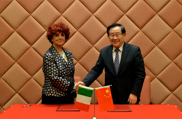 在第八屆中意創(chuàng)新合作周期間,中華人民共和國(guó)科學(xué)技術(shù)部部長(zhǎng)萬(wàn)鋼和意大利共和國(guó)教育、大學(xué)與研究部部長(zhǎng)瓦萊麗亞·費(fèi)德莉(Valeria FEDELI)于2017年11月13日舉行了會(huì)晤。