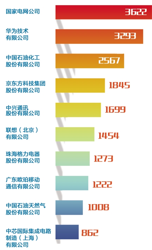 此外,作為研發(fā)密集型企業(yè)的代表,中芯國(guó)際集成電路制造(上海)有限公司也憑借授權(quán)862件發(fā)明專(zhuān)利躋身十強(qiáng)。“這表明企業(yè)只要重視創(chuàng)新,加大專(zhuān)利保護(hù)和運(yùn)用,也能后來(lái)居上。”蘇平說(shuō)。