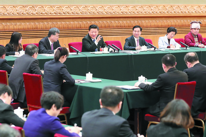3月7日,中共中央總書記、國家主席、中央軍委主席習近平參加十三屆全國人大一次會議廣東代表團的審議。新華社發(fā)(盛佳鵬攝)