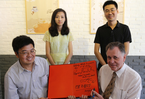 7月TjAb眾創(chuàng)空間迎來一位國際大牛,正在參加2015年國際生物經(jīng)濟大會的“諾貝爾”獎得主馬歇爾光臨了這里,對導師微信墻頗感興趣的他,還拿出了自己的微信二維碼,現(xiàn)場讓創(chuàng)客們掃一掃,加微信隨時聯(lián)系。