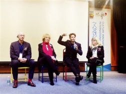 龍崗區(qū)在第十二屆創(chuàng)意十二月評(píng)選活動(dòng)中收獲7個(gè)優(yōu)秀項(xiàng)目獎(jiǎng)和十佳組織獎(jiǎng) 文化創(chuàng)客成龍崗文創(chuàng)產(chǎn)業(yè)生力軍 國(guó)際大咖支招文創(chuàng)產(chǎn)業(yè)發(fā)展(從左至右分別為John Howkins、Orly Fromer、Stu Levy和Anne Lett