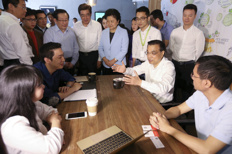 2015年5月7日,李克強來到中關(guān)村創(chuàng)業(yè)大街3W咖啡。他坐下來與年輕人邊喝咖啡邊聊創(chuàng)業(yè)。蜂擁圍攏過來的創(chuàng)業(yè)者爭搶著向總理介紹各自的項目。聽到大家各種奇思妙想的創(chuàng)意,總理感嘆道:“這里精彩紛呈,什么想法都有!真正知道社會需求的是大眾,這正是大眾創(chuàng)業(yè)的精髓所在。”(資料圖)