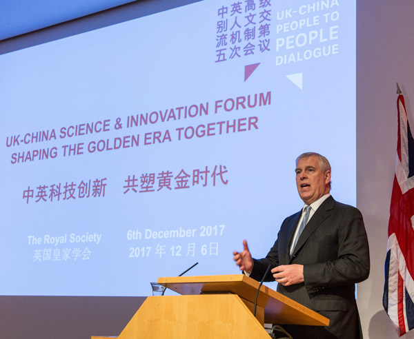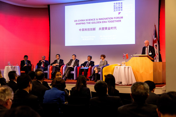 2017年12月6日,中國(guó)科學(xué)技術(shù)部與英國(guó)商業(yè)、能源和產(chǎn)業(yè)戰(zhàn)略部在英國(guó)皇家學(xué)會(huì)共同舉辦“中英科技創(chuàng)新合作:共塑黃金時(shí)代”論壇,該活動(dòng)是中英高級(jí)別人文交流機(jī)制第五次會(huì)議的重要活動(dòng)之一。國(guó)務(wù)院副總理劉延?xùn)|、科技部黨組書(shū)記、副部長(zhǎng)王志剛與英國(guó)約克公爵安德魯王子、英國(guó)大學(xué)、科學(xué)、研究與創(chuàng)新國(guó)務(wù)大臣喬·約翰遜(Jo Johnson)等出席論壇致辭并參觀了中英科技創(chuàng)新成果展。
