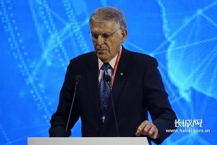 以色列諾貝爾化學(xué)獎得主達(dá)尼埃爾謝赫特曼正在發(fā)表演講。記者張藝萌攝