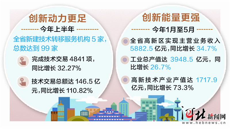 ——創(chuàng)新動力更足。今年上半年,全省新建技術(shù)轉(zhuǎn)移服務(wù)機構(gòu)5家,總數(shù)達到99家;完成技術(shù)交易4841項,同比增長32.27%;技術(shù)交易總額達146.5億元,同比增長110.82%。