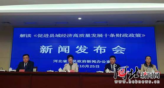 河北新聞網(wǎng)10月25日訊(記者張巖)今天,河北省政府新聞辦召開發(fā)布會(huì),省財(cái)政廳對(duì)省政府近日印發(fā)的《促進(jìn)縣域經(jīng)濟(jì)高質(zhì)量發(fā)展十條財(cái)政政策(試行)》(以下簡稱《十條政策》)進(jìn)行解讀。