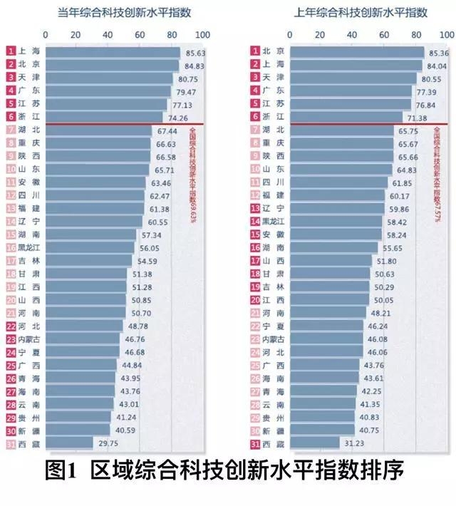 10月29日,《中國區(qū)域科技創(chuàng)新評價報告2018》(簡稱《報告》)在浦江創(chuàng)新論壇上發(fā)布!秷蟾妗凤@示,中國區(qū)域科技創(chuàng)新水平穩(wěn)步提升,全國綜合科技創(chuàng)新水平指數(shù)為69.63%,比上年提高2.06個百分點。其中,上海、北京的科技創(chuàng)新水平高,引領(lǐng)發(fā)展的地位愈加凸顯,天津排在第三,廣東、江蘇和浙江緊隨其后,展現(xiàn)了東部地區(qū)突出的創(chuàng)新優(yōu)勢。