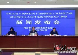 3月20日,河北省政府新聞辦召開新聞發(fā)布會,對《河北省人民政府關于加快推進工業(yè)轉(zhuǎn)型升級建設現(xiàn)代化工業(yè)體系的指導意見》進行解讀。圖為發(fā)布會現(xiàn)場。記者杜昱輝攝 河北新聞網(wǎng)3月20日訊