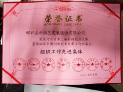 在本年度舉辦的河北省第三屆創(chuàng)新創(chuàng)業(yè)大賽暨第四屆中國(guó)創(chuàng)新創(chuàng)業(yè)大賽(河北賽區(qū))決賽中,邯鄲高科園憑出色組織工作,榮獲大賽的組織工作先進(jìn)集體獎(jiǎng)。 河北省第三屆創(chuàng)新創(chuàng)業(yè)大賽暨第四